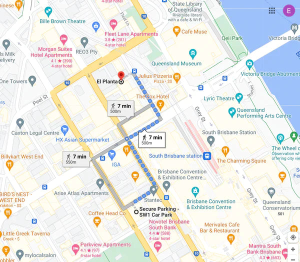 We highly recommend jumping an uber or a bus as you won't be able to stop at 1 marg and we are super close to the cultural centre bus stop and South Brisbane train station.